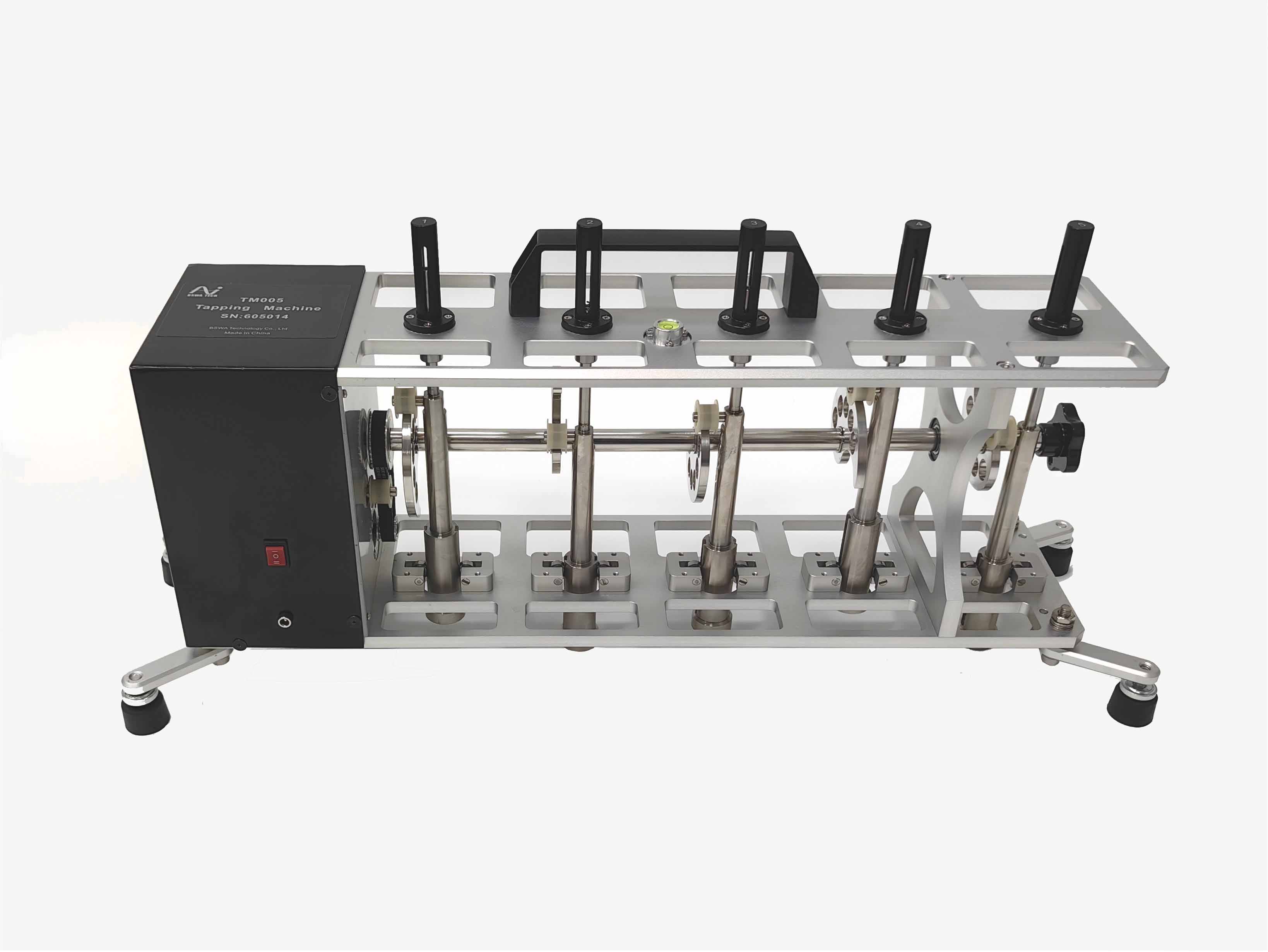 TM005帶有5個(gè)呈直線排列的加硬不銹鋼重錘,每個(gè)重錘為500g,錘頭直徑30mm,撞擊面曲率500mm,相鄰兩個(gè)重錘間距100mm。標(biāo)準(zhǔn)撞擊器工作時(shí),重錘將按1、3、5、2、4的順序,依次從40mm高度垂直自由下落撞擊地面,撞擊平均時(shí)間間隔100ms,重錘的下落方向垂直于測試表面,誤差在±0.5°范圍內(nèi)。標(biāo)準(zhǔn)撞擊器的支腳設(shè)計(jì)為可折疊式,使用時(shí)可展開至遠(yuǎn)離重錘100mm以外,不用時(shí)可折疊以便攜帶。帶有橡膠減振墊的支腳可以調(diào)節(jié)高度,可在不平整或軟地面上工作時(shí)調(diào)整重錘下落高度。標(biāo)準(zhǔn)撞擊器頂部帶有氣泡水平儀,方便調(diào)整水平姿態(tài)。同時(shí)配有遠(yuǎn)距離無線遙控器,可跨樓層對標(biāo)準(zhǔn)撞擊器進(jìn)行遙控。