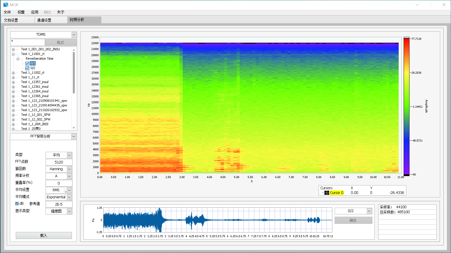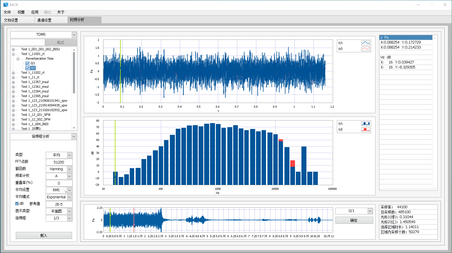 多通道的倍頻程分析界面,可選擇需要分析的數(shù)據(jù)段進行OCTAVE分析